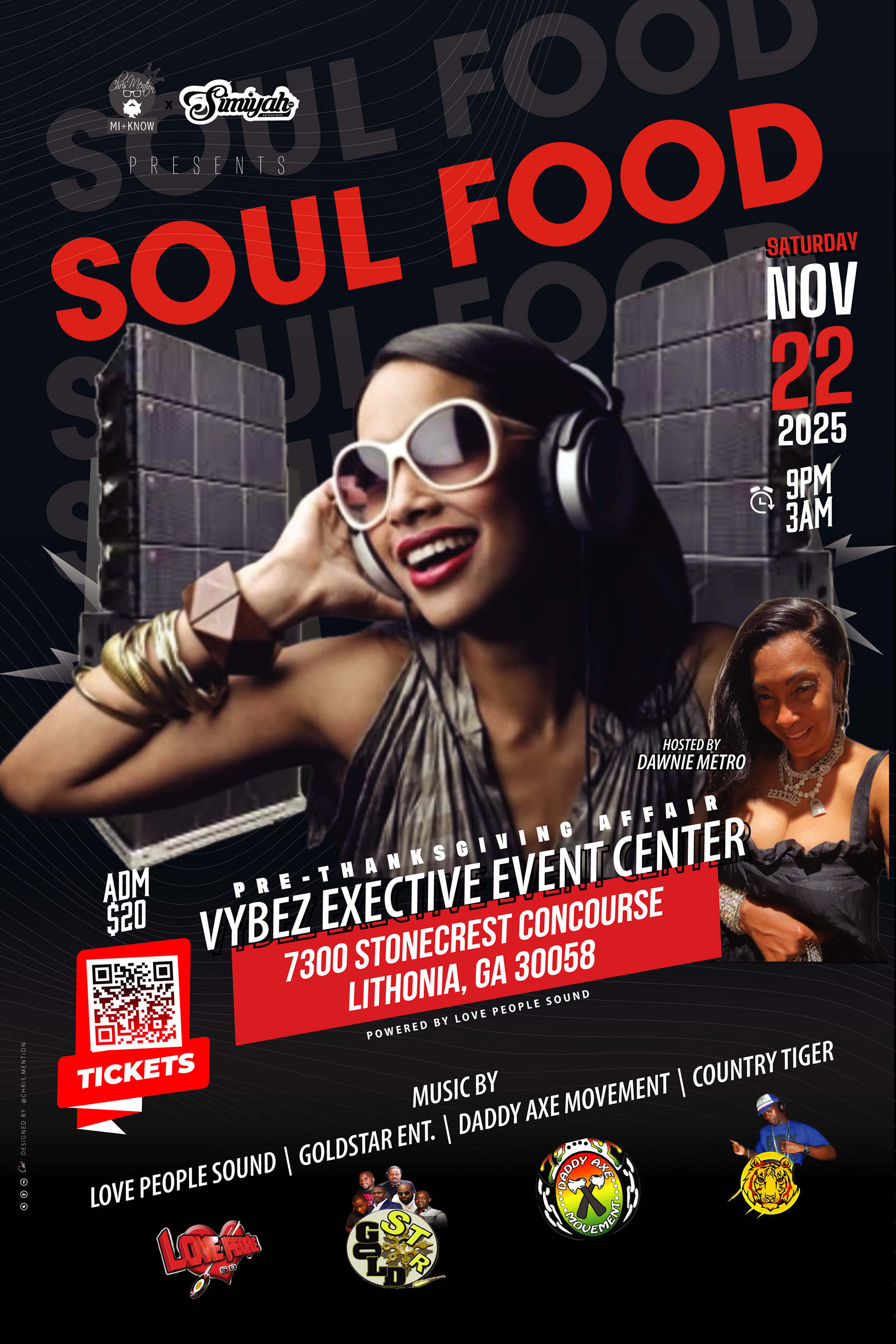 #SoulFoodDance #VybezExecutive #DawnieMetro #PreThanksgivingParty #AtlantaEvents #DancehallVybez #GrownAndSexyVibes #LovePeopleSound #GoldstarEntertainment #CountryTiger #DaddyAxe